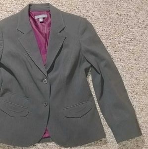 Atelier 2 button blazer. Polyester blend, light grey with fun hot pink lining, 3 pockets (still sewn shut) BNWOT