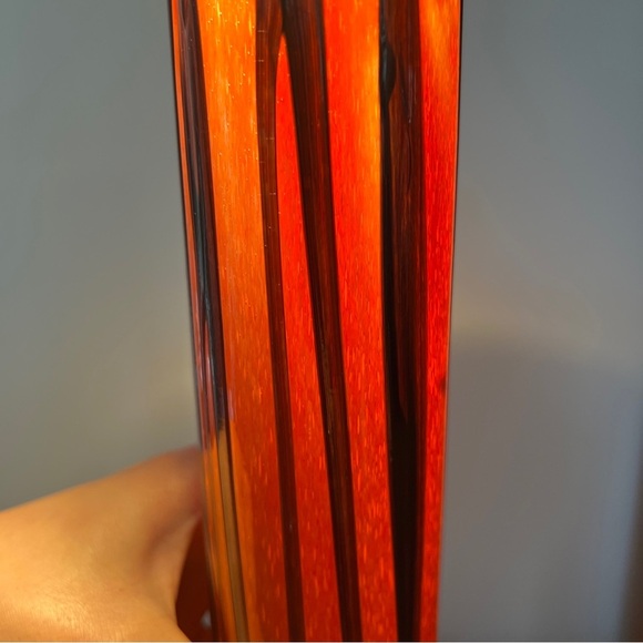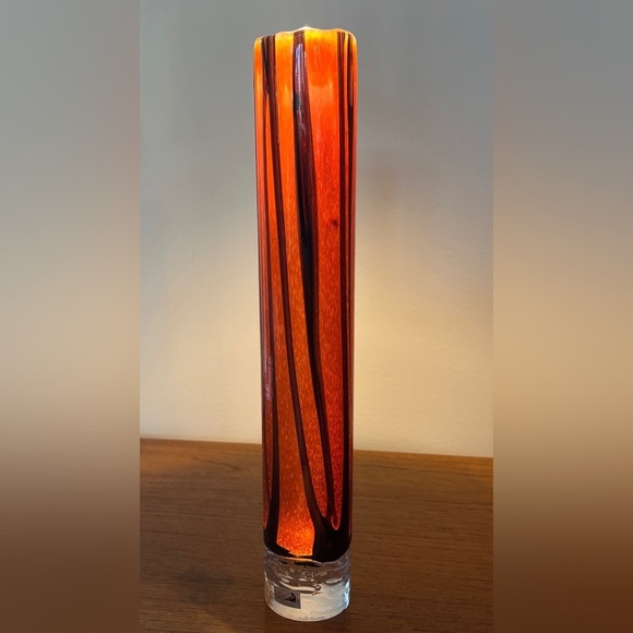Atelier Beranek 14” Round Orange Hand Blown Art Glass Vase Marked Vintage