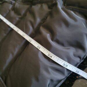 Atelier Noir, EUC, Size L, Black Down Coat, with zipped front pockets, thumbholes at sleeves, full zip front together with snap button closure, 50% duck down and 50% duck feather. No visible marks, stains, tears, pilling. Great winter weight In almost new condition!! It appears as though this coat may have had a hood at one point, but there's no hood on this one.