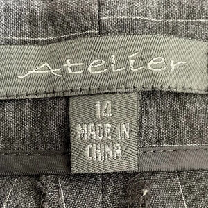 Atelier Straight Leg Poly Blend Washable Striped Pants Grey + White Sz 14 NWT