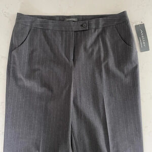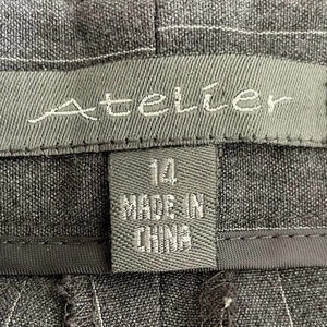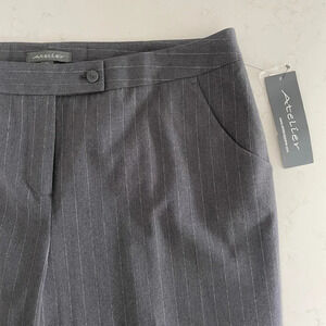 Atelier Straight Leg Poly Blend Washable Striped Pants Grey + White Sz 14 NWT