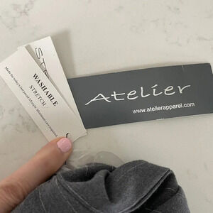 Atelier Straight Leg Poly Viscose Blend Washable Stripped Pants in Grey + White NWT