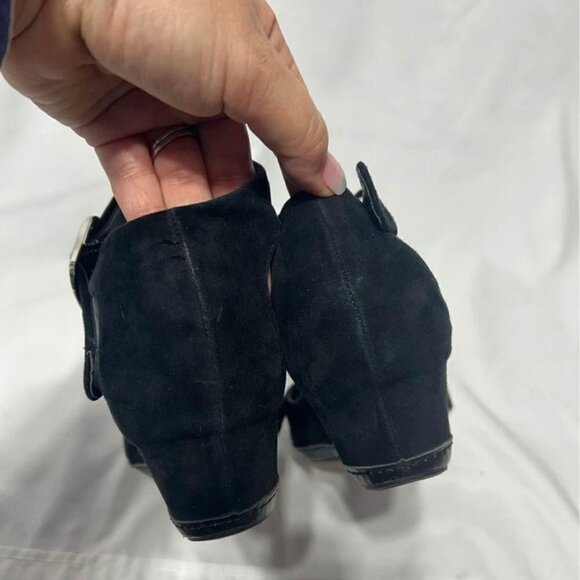 Ateliers woman’s leather open toe sandals. Silver buckle. Italian made. Size 39.