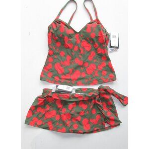 Athena Cherry Print Floral 2 Pc Skirted Tankini - Sz 6 - NEW