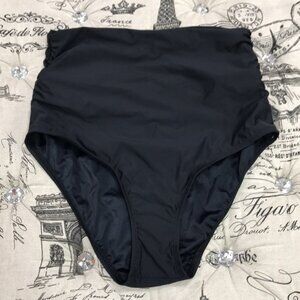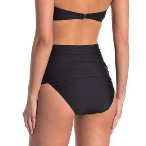 An on-trend ultra high waist elevates these bikini bottoms with ruched details for a perfect poolside look.