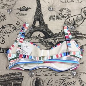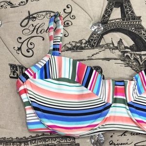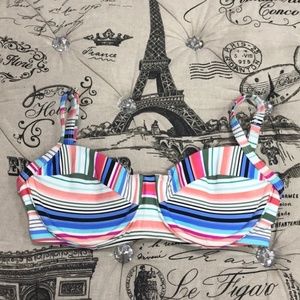 Flirty and supportive, a bikini top features an allover stripe print and underwire detail.