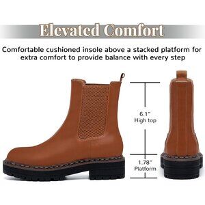 Athlefit Women Brown Chelsea Wedge Platform Slip on Lug Sole Elastic Ankle Boot