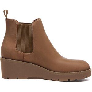 Athlefit Women Brown Chelsea Wedge Platform Slip on Lug Sole Elastic Ankle Boot