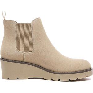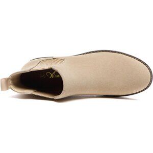 Athlefit Women Nude Chelsea Wedge Platform Slip on Lug Sole Elastic Ankle Boot