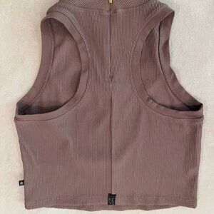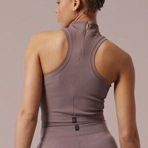 ATHLETA ALICIA KEYS Rib Crop Top Racerback High Neck Women’s Size M Taupe
