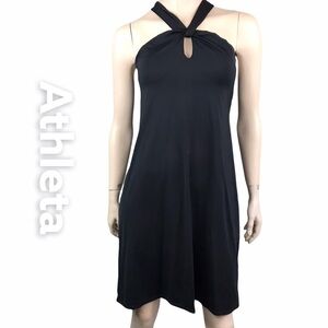 Athleta Black Halter Style Racerback Tie Back A-Line Athletic Dress XL Sporty Minimalist Travelcore