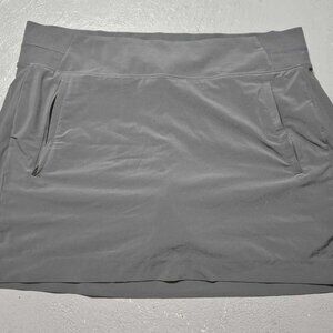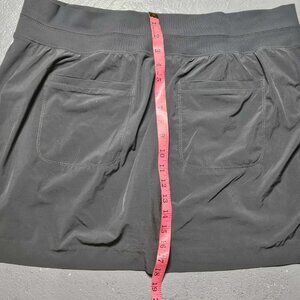 Lightweight skort with 4 inch shorts underneath. Two zippered pockets on the front and back pockets. Midrise.