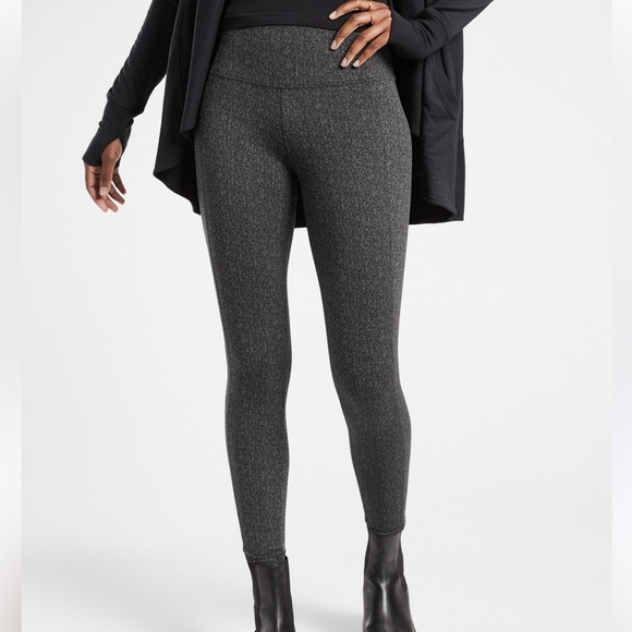 Athleta Delancey Herringbone leggings in a versatile gray and black chevron pattern.