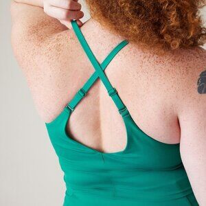Athleta | Elation V-Neck Longline Sports Bra D-DD In Coral Orange