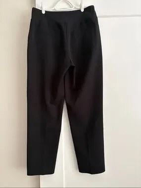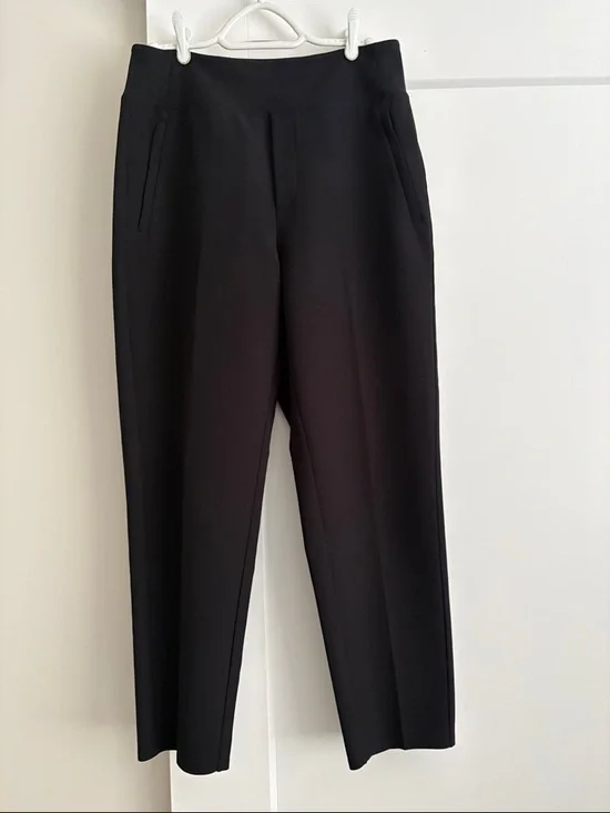 Versatile black dress pants in a clean tailored silhouette. Smooth fabric with a flat front and side pockets for a polished look. Designed for comfortable all-day wear and easy pairing with shirts or blazers. Black color offers timeless versatility.