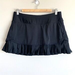 Athleta GOOD MATCH Skort Skirt Tennis Pinstripe Pleats Black Womens M