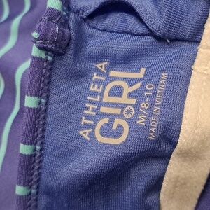 Athleta Girl Medium or 8/10 purple and teal striped tank top, racer back straps with triangle of mesh, no pilling or washwear