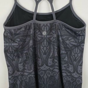 Athleta Size M HARMONIOUS Strappy Yoga Floral Print Athletic Tank TOP Grey