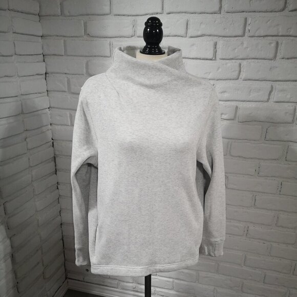 Athleta Ladies Size Large Light Grey Fleece Lined Straight Fit Sweat Top