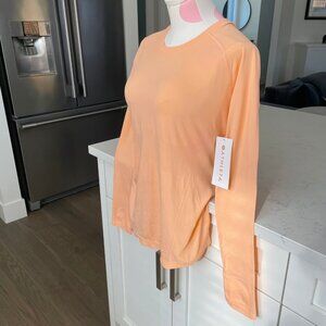 Athleta Momentum Seamless Long Sleeve Crew Neck Nylon Activewear Top in Light Tangerine Peach NWT