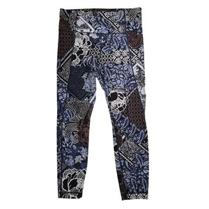 Athleta Patchwork Salutation 7/8 Cropped Leggings Blue Brown - Sz M