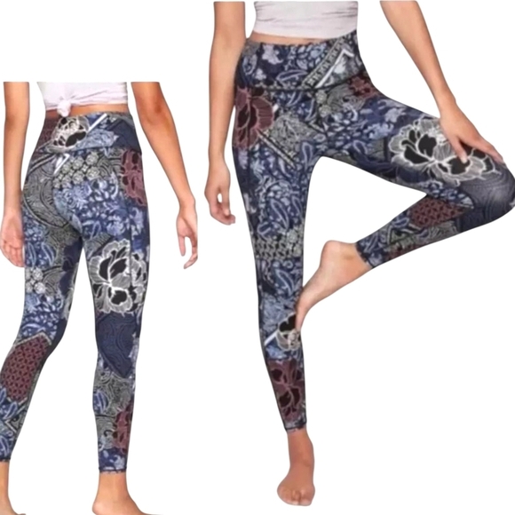 Athleta Patchwork Salutation 7/8 Cropped Leggings Blue Brown - Sz M