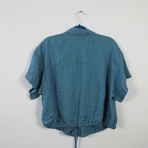 Athleta Playa Tie Top Women 2X Blue 100% Linen Short Sleeve Tie Waist Casual 274