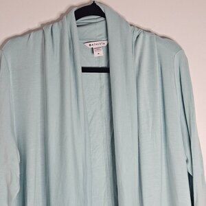 Supersoft open front drapey cardigan. Thumbholes. Relaxed fit. Long Length.