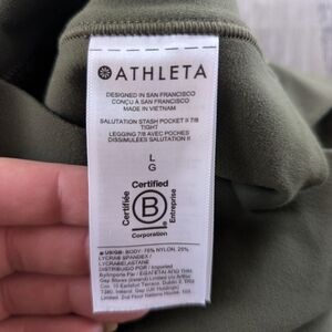 Athleta Salutation Stash Pocket High Rise 7/8 Legging Green Womens Petite Large