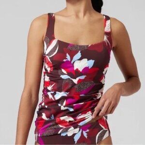 Athleta Square Neck Floral Tankini Swim Top/ Bottom Sz M