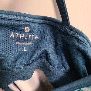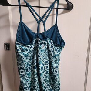 Turquoise Athleta Tank Top with built in bra, and cross back design. Size L.