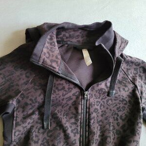 Athleta Triumph Hooded Jacket Womens Small Brown Black Leopard Print Thumb Holes