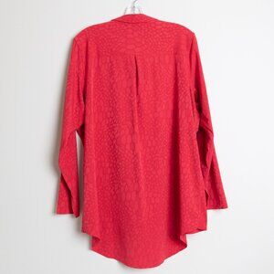 Athleta Urbanite Textured Top Red Long Sleeve Button Down Blouse Cheetah Print