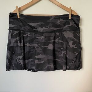 Athleta Women's Ace Printed Tennis Skort 13.5" Black Camoflauge. Fully lined with shorts.back zipper pocket. Pleats. Size extra large. Excellent condition.