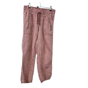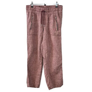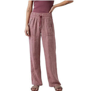 Athleta Womens Cabo Linen Wide Leg Pant Size 6P 100% Linen Tawny Rose Tie Waist