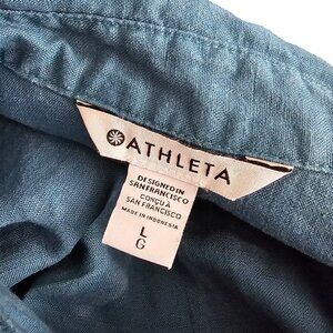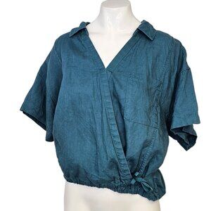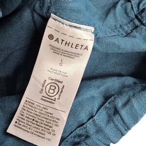 Athleta Womens Playa Tie Top, 100% Linen, Wrap, Blue, Coastal, Size Large