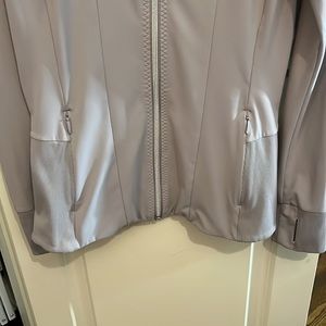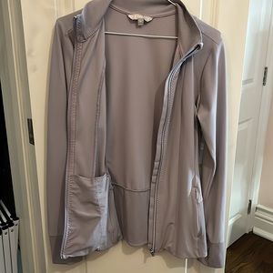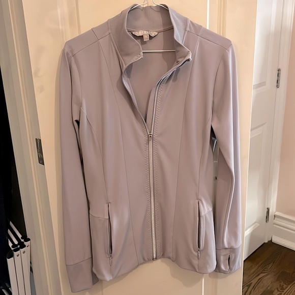Athleta lilac jacket (very light purple). Size m. Excellent condition, worn only a few times. Ribbed trim. Zip pockets. From a smoke-free, dog friendly household.
