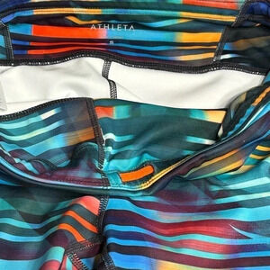 Athleta leggings size small ,multicolor stripes with abstract geometric,gym,EC