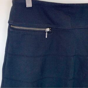 Athleta Strata Ponte Knit A-Line Zippered Pocket Stretch Skirt in great preloved condition. Pull on style is great for golf, tennis, hiking and casual events. Featuring horizontal stripe seam details and front zip pockets.