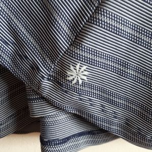 Dark blue and white stripes. The straps have little holders for your bra strap.