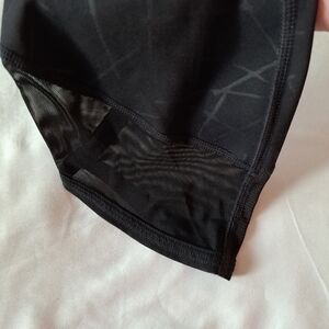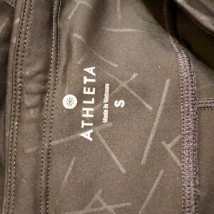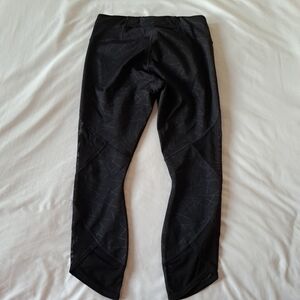 Athleta women's Angle Aura Sonar (black with lighter lines) legging, cropped with mesh inlay size small. pocket in back of waistband, euc. no signs of wear or defects
