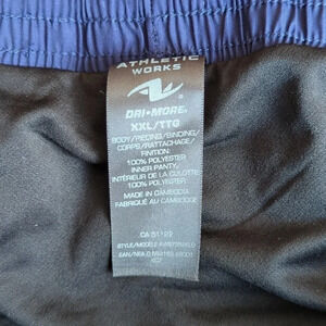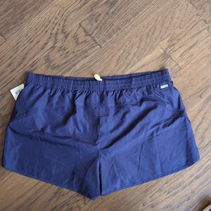 Navy blue with a Neon Yellow/Green stripe. Lined with an "inner panty" for privacy. Rise measurement is 28 cm (11").