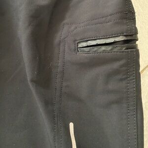 This cargo style pants is created in a breathable fabric. It has a zipper pocket on a leg and one zipper pocket on the back . The zipper on the leg is broken but I believe that it can be fixed. Make sure to take advantage of the ankle toggle - you can decide between a jogger or straight leg fit.