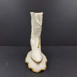 Atlantic Mold by Jano 1981 Ceramic Victorian Boot Hand Painted Gold Cream Vase