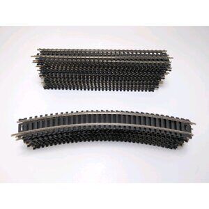 Vintage Atlas 18" R & 9" Snap Track & Left Right Switch for HO scale model trains. Includes 14 curved 18" R snap tracks, 18 straight 9" snap tracks, a left and right snap switch (with controls), and two 1/3 18" tracks. In good condition with some minor play wear. See photos for a closer look!