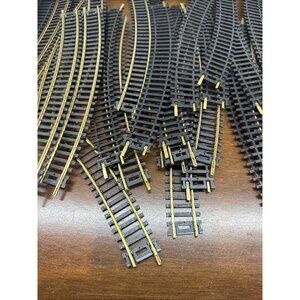 Expand your HO scale railroad layout with this comprehensive Atlas curved snap track lot. Containing 78 pieces, this set is perfect for both seasoned modelers and newcomers looking to create a realistic rail network. Each piece is crafted from high-quality brass, ensuring durability and a classic look, while the black track rails are designed to blend seamlessly into any scenic environment.