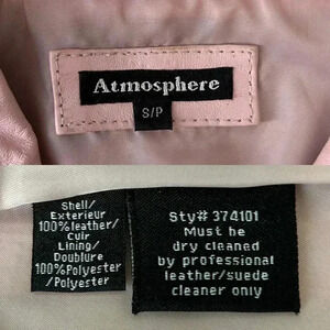 Elevate your wardrobe with the Atmosphere Genuine Leather Jacket Zip Front in Pink, size small.