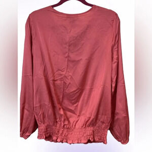 Attention beaded balloon long sleeve Rayon V neck blouse Sz L