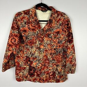 Attitude Artsy Aztec Button Front Embellished Jacket Large Petite Brown Orange