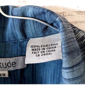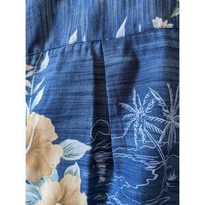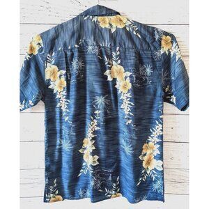 Attitude Hawaiian Silk Men's Shirt Blue Hibiscus Floral Button Down Size M